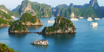 夜幕降臨,下龍灣這個世界自然遺產依舊讓人驚嘆不已。在國賓號夜間派對遊輪上,最讓人驚艶的是在下龍