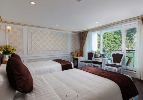 La Regina Cruise 遊輪於下龍市起航,提供優雅舒適的住宿和覆蓋全區的免費 WiFi。遊輪設有 24 小時接待櫃檯、桑拿設施和大型屋頂露台。空調客房享有寧靜的海景,鋪有木質地板,並附衣櫃、迷你吧、室內保險箱和平面電視;私人衛浴內備有吹風機、拖鞋、淋浴設施和免費盥洗用品。Royal Wings Cruise 遊輪上的客人可以在 SPA 盡情享受舒適的按摩服務或卡拉 OK 歡暢時光。遊輪可以安排行李寄存、保姆服務和洗衣/乾洗服務。遊輪附設餐廳供應各種美味的越南和西式料理。遊輪可應要求準備特殊飲食餐點,並提供客房服務。