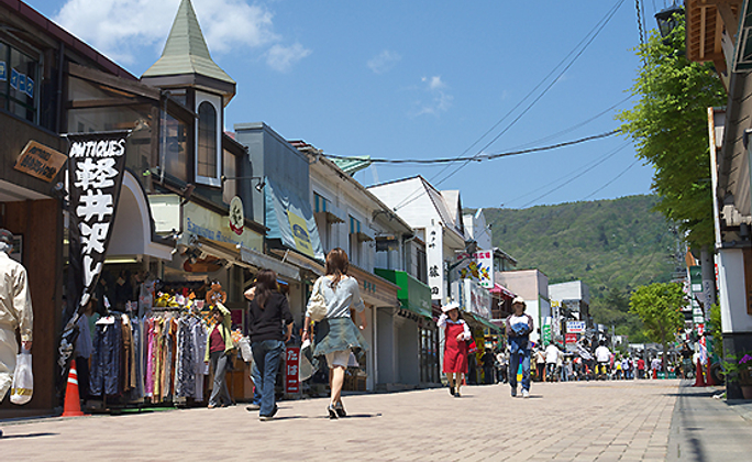 以教堂為起點、有林蔭小徑可休閑散步,也有「輕井澤銀座」各式各樣日本風味藝品的商店街可逛。