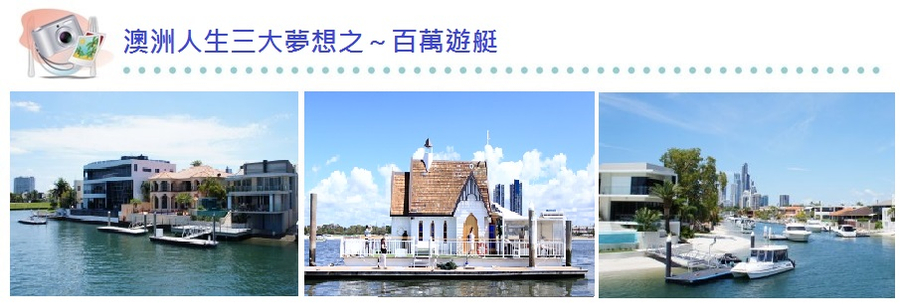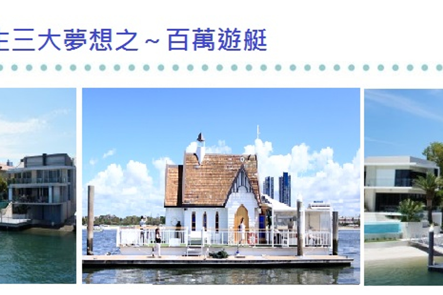 黃金海岸百萬遊艇之旅~搭乘豪華遊艇出航,穿梭於絕美的水道之中,參觀別具特色的水上教堂,並欣賞岸邊千萬豪宅的壯麗景色。