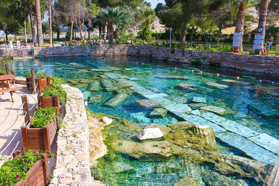 以如棉花般潔白的石灰岩地形聞名,是大自然與歷史共同塑造的奇蹟。溫泉富含礦物質,長年從山坡湧出,沉積成層層白色梯台,遠看宛如覆著白雪,因而得名「棉堡」。除了療癒的溫泉環境,棉堡同時也是古代名城希拉波利斯的所在地,曾是古人追求健康與休憩的重要溫泉城。 📌希艾拉波利斯古城遺址Hierapolis