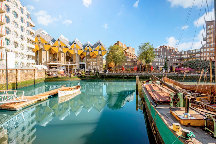 此市二次大戰德軍入侵,為迫使荷蘭投降,德軍轟炸鹿特丹。幾乎被夷成平地的鹿特丹重建後興起很多大膽而特殊的建築,長久以來從中央火車站到市區之間的建設不斷,將鹿特丹蛻變為全新樣貌的現代都市。📸方塊屋