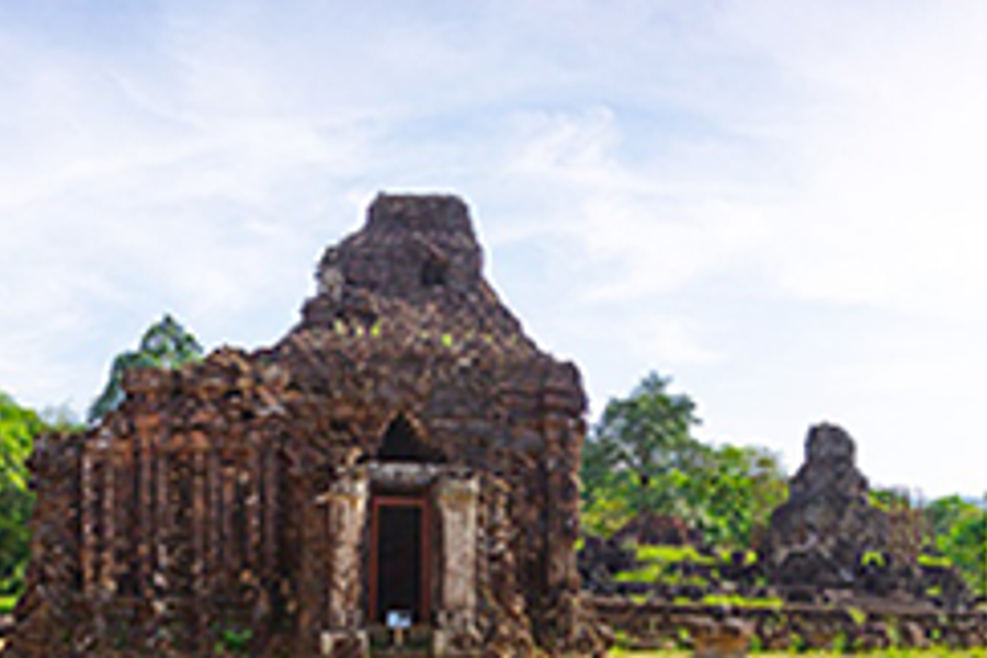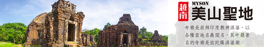 【美山聖地My Son Sanctury】為中越最著名的占婆遺址區世界遺產之一。西元200~1700年間統領越南中南部的「占婆王國」,於4世紀起開始建造,供奉占婆神靈及歷代國王,而占婆神靈中又以占婆王國的守護神濕婆神為主。1885年由一群法軍在叢林中發現掩蓋的占婆塔群,此地為越南一個時代文化交融的例證,它借鑒了南亞次大陸的印度教建築風格,曾為占婆王國的政治和宗教首都。雖然越戰期間越共將此據為反攻基地,因此遭受美軍炮火的轟炸,許多遺跡已被破壞,不過遺跡群面積相當大,目前遺留約25座建築,遺跡群內可看到壯觀的塔寺、以磚為主要建材,飾以砂岩雕飾,各種人獸石雕活靈活現,可見當時的石雕藝術以相當良好,所以美山勝地仍是這區域保留最完整的占婆遺跡,1999年已列為世界文化遺產,整個占婆建築有著獨特的細緻美感,初到此地有種在越南驚見吳哥窟的感覺。
