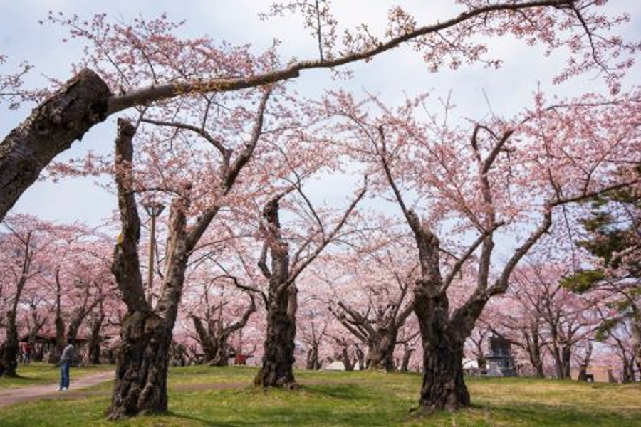 以樹齡百年以上的古櫻樹、品種多樣的森小町、青葉枝垂..等構成花海,特色是在5月上旬至中旬盛開,可與駒岳山、噴火灣美景搭配,是來到道南悠閒賞櫻體驗。