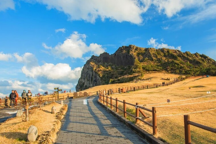 為漢拏山360個止火焰山之一,也是世界最大的突出於海岸的火山口,攀登30分鐘左右到山頂;由此也可觀看日落,加上可以瞭望一片廣闊的牧場,美不勝收,令人嘆為觀止,遠眺這山峰綺麗景色,其西海岸有海螺﹑鮑魚養殖場,運氣好時候還可觀看到韓國國寶級海女潛水採集海產的情景。