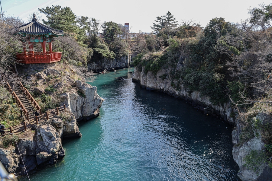 🏞️龍淵峽谷~碧綠溪水搭配峭壁美景,濟州島絕美秘境溪谷