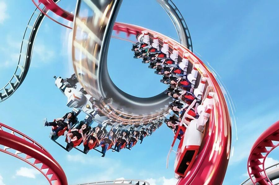 遊客可登上世界最高的雙軌過山車《太空堡壘》,親身參與人類與機械人之戰,紅、藍兩色雲霄飛車,同時出發,交叉同時運轉。高速度達82.8km/h~90km/h,最高會升至14層樓的高空,不時還會再空中來個不期而遇,感受與對面來車幾近碰撞的刺激,連旁觀者都是驚呼連連呢!