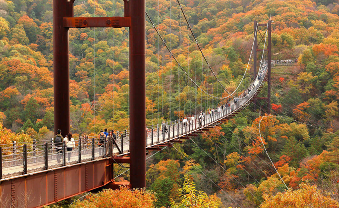 穿過吊橋,可以欣賞到壯麗的森林景色,一年四季的美景盡收眼底。雖然它是一座建造精良的吊橋,但也會搖晃,因此通行時能體驗到驚險刺激的感覺。可在此一邊欣賞周邊的壯麗景色,一邊享受空中漫步。嘗試恰到好處的健步路線也是不錯的選擇。不過由於是自然公園,所以會有不少斜坡和濕滑不好走的地方。建議做好出行準備,穿舒適的鞋子出發。