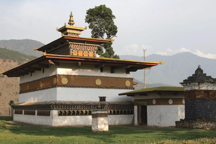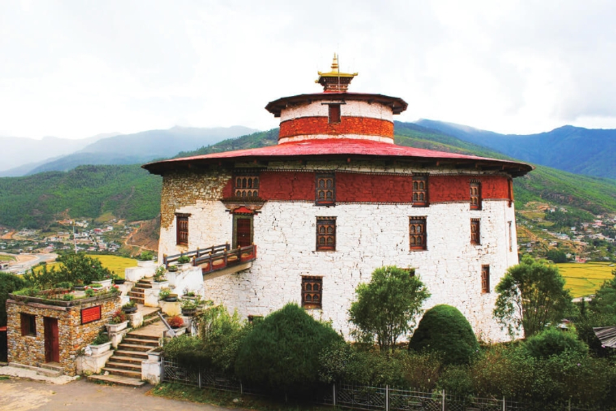 【祈楚拉康寺】意為古雀寺或朱雀寺,音譯為祈楚寺,又稱千手千眼觀音寺,是不丹王國所興建的第一批宗教堡壘,為不丹境內非常古老的藏傳佛教寺廟︒寺廟興建於西元七世紀,坐落於不丹西面帕羅宗的帕羅河谷,海拔高約2300公尺,是不丹王國西部非常著名的佛教寺廟與行政中心,更是不丹王室舉行重要慶典的場所︒【國家博物館】又稱為 Ta-Dzong,建於1649年當時是用於防守帕羅的瞭望塔,所以其位置比帕羅 還要高,居高臨下觀察帕羅河谷全景,以防禦外敵入侵︒瞭望塔的建築特色是類似海螺的造型,建築物內有旋轉樓梯貫穿六層展覽廳︒