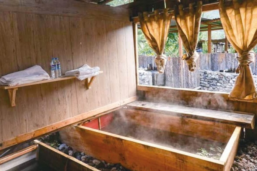 【虎穴寺】藏名為塔克桑寺,宗卡語原名為帕羅達倉寺,意為虎穴寺或虎巢寺,是不丹國內最神聖的寺廟︒曾被譽為世界十大寺廟之一,坐落在帕羅峽谷之上900公尺高的的懸崖上,海拔3120公尺︒【熱石浴】源自於農家,將石頭燒得滾燙後,倒入裝滿泉水的木桶隔板裡,利用石頭加溫泉水後用熱水洗滌一身的疲憊︒在熱石浴中除了可放入新鮮花瓣與草藥增進其功效外,石頭灰附帶的礦物質也能滋養肌膚,相當推薦給每位到訪不丹的遊人︒