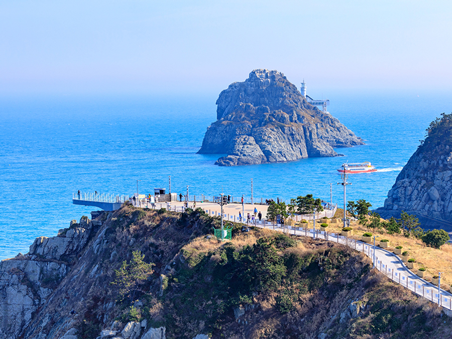 【青沙浦踏石觀景台】於2017年9月17日開放的青沙浦踏石觀景臺,位於從尾浦出發到松亭的東海南部線廢鐵路腹地中間,距離海平面高20公尺,長72.5公尺,向大海延伸,寬3~11.5公尺,建造費用投入了約43億韓元。觀景臺的尾端設置了半月形的透明地板,可感受到在海上行走的刺激感,從觀景臺正前方到海上燈塔為止,可以看到整齊排列的5個暗礁——踏石,因而得名踏石觀景臺。在此可以欣賞到青沙浦秀麗的海岸景觀和日出、日落的自然風光。