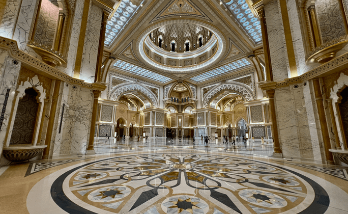 阿布達比 是阿拉伯聯合大公國的首都,同時也是充滿獨特文化氛圍的的現代大都市,在這裡東、西方文化交匯,新舊習俗共存,古老傳統與現代文明構成鮮明對比,和煦的陽光、浪漫的海灘、一望無際的沙漠與神秘曼妙的阿拉伯風情,構成一幅幅動人美景。【總統府國家宮殿】(入內參觀)是阿布達比的一座正在使用的總統府,是一座雄偉的文化地標,展現了阿聯酋豐富的遺產。它超越了傳統的宮殿,促進文化理解,展示歷史,並向阿拉伯遺產致敬。其宏偉的設計和開放的大廳反映了其在阿聯酋文化中的重要性。沉浸在知識和傳統中。探索阿聯酋的形成、其執政傳統以及阿拉伯對各個領域的貢獻。