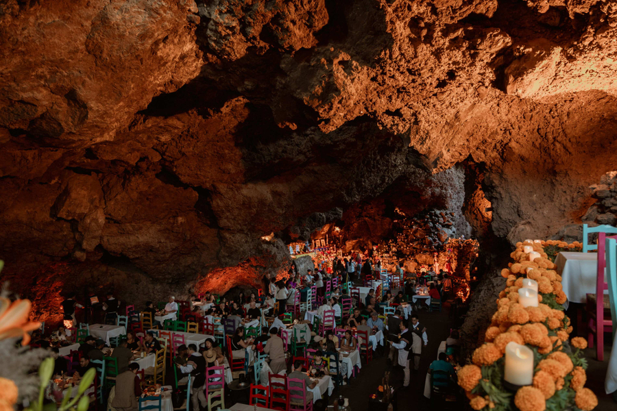 特奧蒂瓦坎 Teotihuacán★特別安排第三天早晨,我們將包車前往阿茲特克人口中的「眾神誕生之地」。西元前 200~700 年,特奧蒂瓦坎文明曾繁盛一時,然而它的起源與衰落,至今都仍是謎團。雖然文明已消逝,但亡靈大道、月亮金字塔(Pirámide de la Luna)與位列世界第三大金字塔的太陽金字塔(Pirámide del Sol)依舊不減宏偉。洞穴餐廳★特別安排請試著想像,坐在古老而涼爽的岩窟內品嚐在地美食,會是什麼模樣?行程中大部分餐食我們都保持彈性與自由,但這間餐廳,我真的想帶你來。為了在一位難求的餐廳搶到一席之地,我們特地提早數月預訂,就是想給你們一場難忘的用餐體驗。