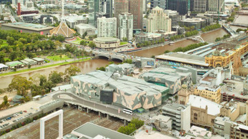 乘坐環城免費電車于近Flinders St. 與 SpencerSt. 交接口下車,越過史班賽橋 (Spencer Bridge),往亞拉河南岸步行約五分鐘左右