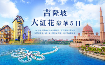 吉隆坡大紅花豪華5日-全程五星、大紅花入住花瓣房型、吉隆坡高塔旋轉餐廳自助午餐、必比登美食推薦