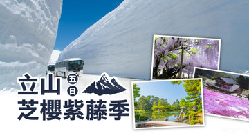 立山芝櫻紫藤祭五日~兼六園、礪波鬱金香(富岩運河環水公園)、立山黑部、國田家芝櫻、美濃竹鼻紫藤祭、合掌村