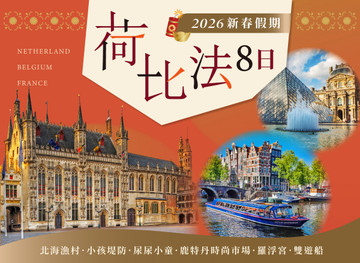 賀歲折五千|荷比法旅遊|三國四遊船、阿姆斯特丹、比利時秘境小鎮、加贈盧森堡12日~升等城區旅館一晚,巴黎市區旅館三晚