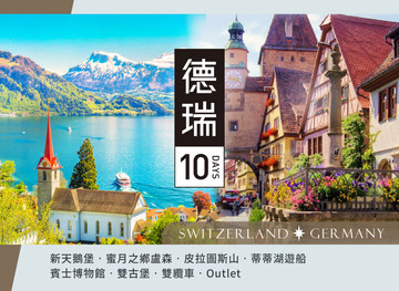 購物節|經典德瑞10日|少女峰.楚格峰.三大湖區.童話羅騰堡.景觀火車